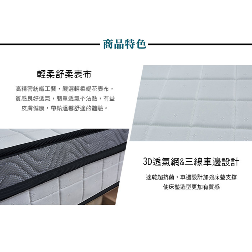 【藤原傢俬】3M防潑水3D透氣蜂巢式三線獨立筒床墊(3F)
