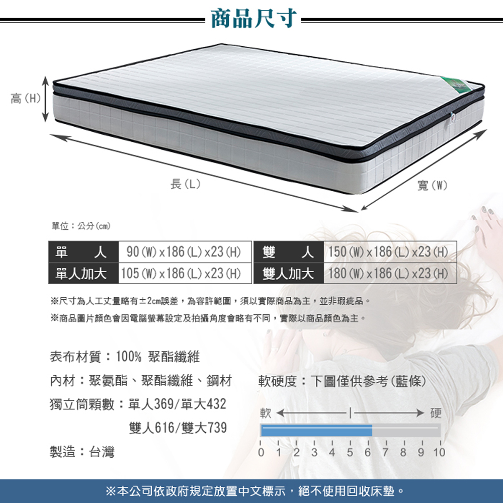 【藤原傢俬】3M吸濕排汗硬式獨立筒床墊(3C)