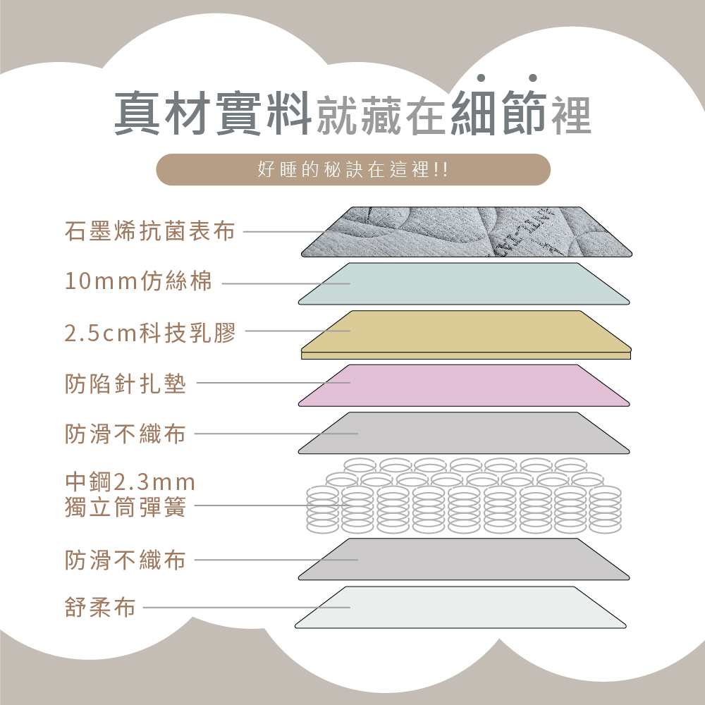 【藤原傢俬】石墨稀防螨抗菌獨立筒床墊