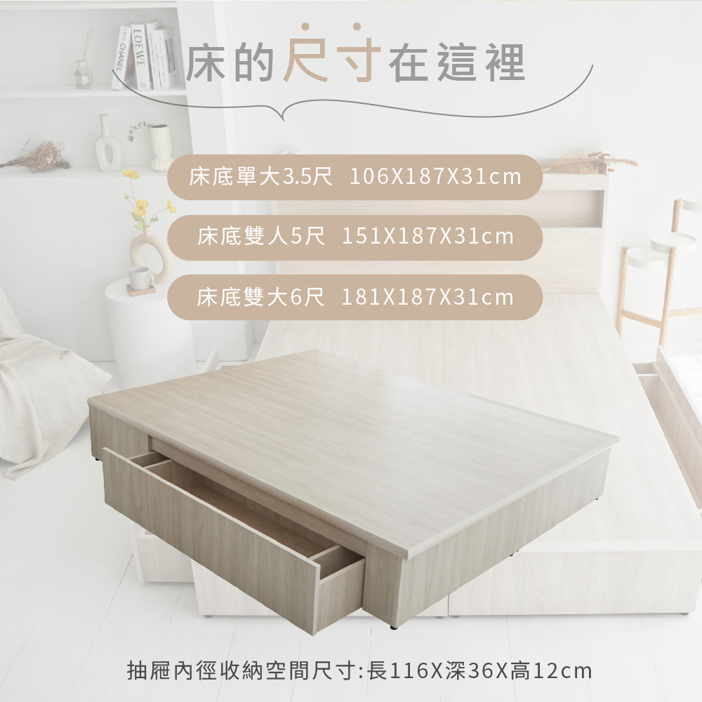 白色戀人木芯板收納空間床底/架-單抽