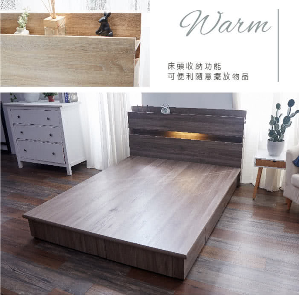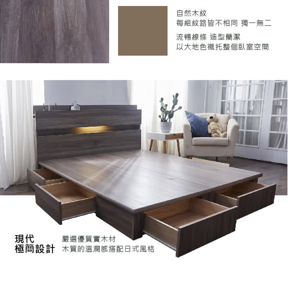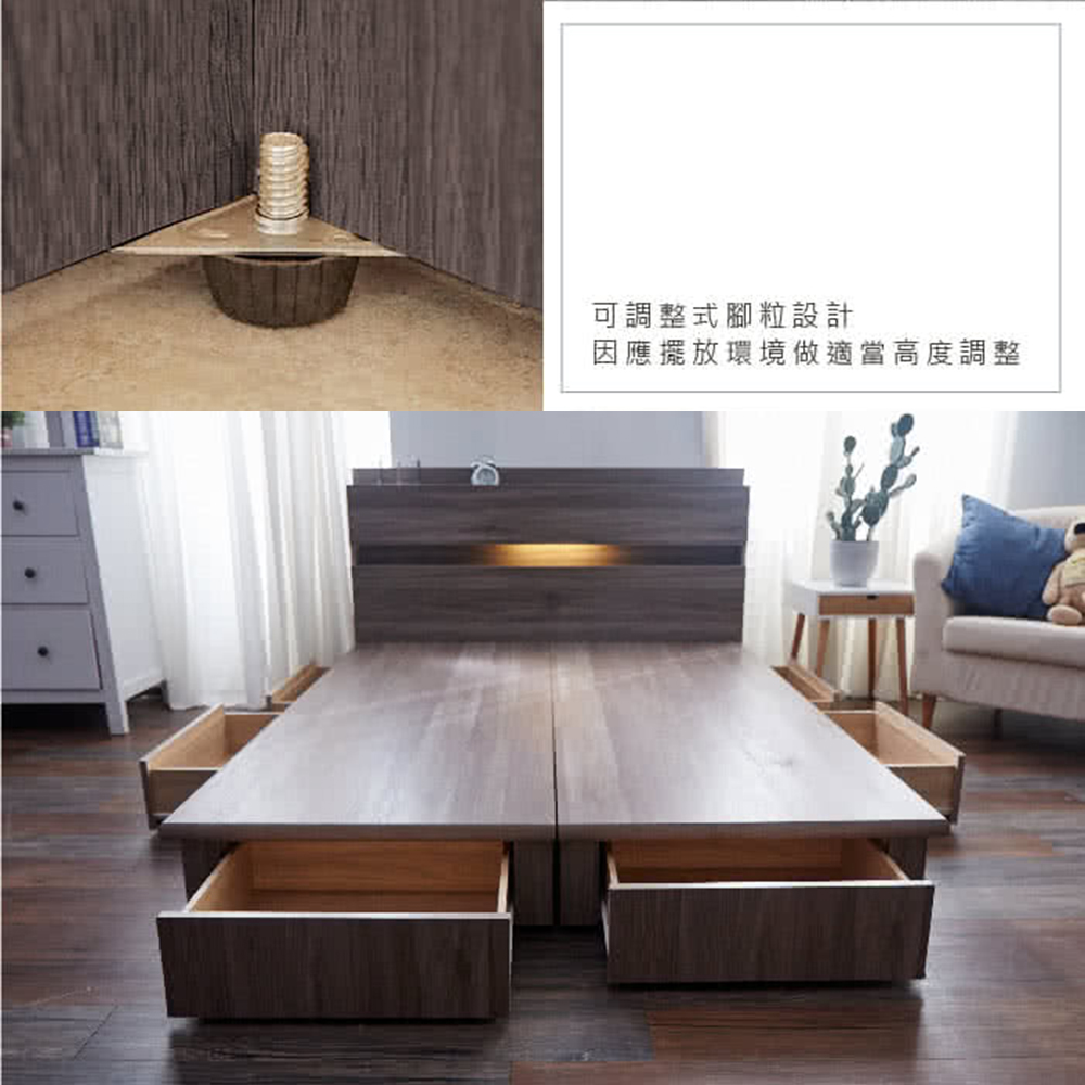 【藤原傢俬】白梧桐雙USB貓抓皮6抽床組(雙USB貓抓床頭+新6抽床底/床架)