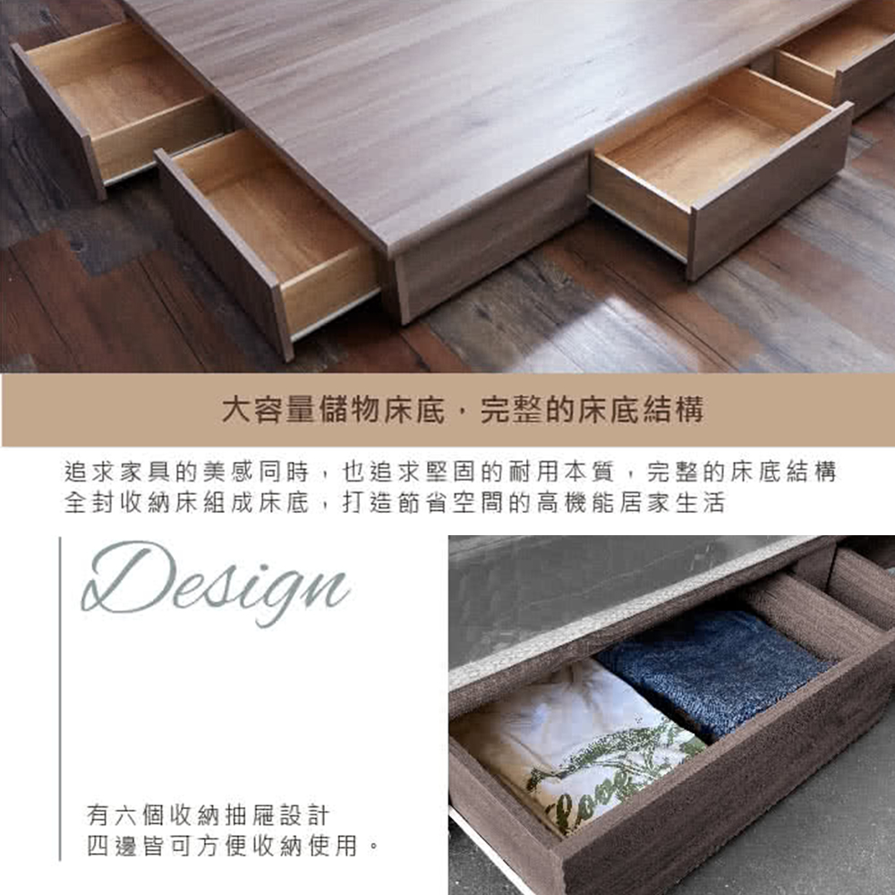 【藤原傢俬】全木芯板新6抽2件式房間組(新6抽屜床架床底+2層收納床頭)