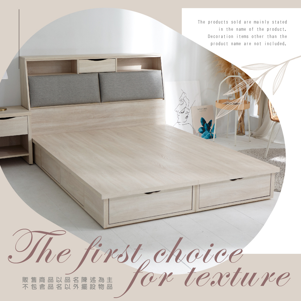 愛麗絲木芯板鋼珠滑軌6抽屜床架(不含床頭)