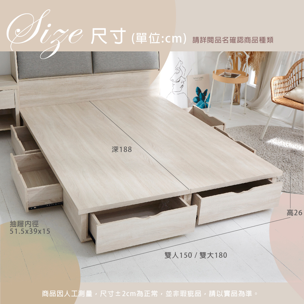 【藤原傢俬】6分木芯板4抽收納床底/架 (不含床頭)