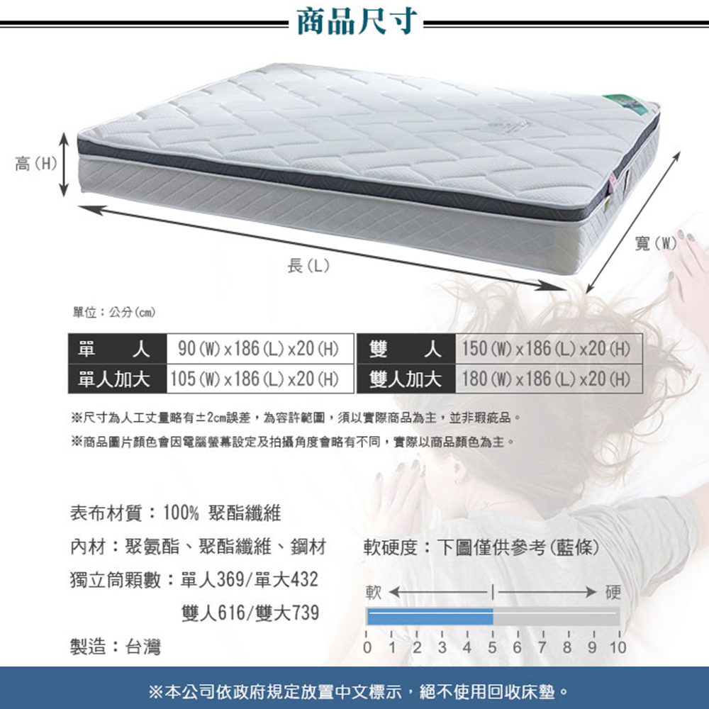 【藤原傢俬】3M吸濕排汗硬式獨立筒床墊(3C)