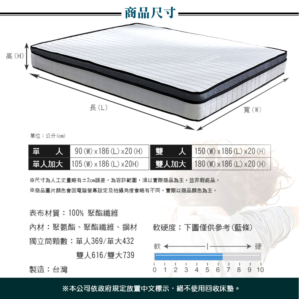【藤原傢俬】3M吸濕排汗硬式獨立筒床墊(3C)