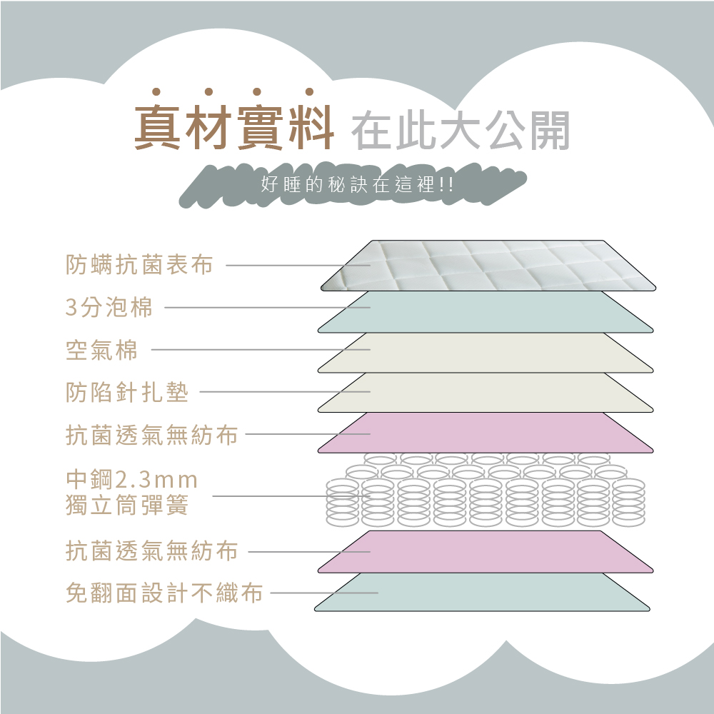 【藤原傢俬】防螨抗菌日式獨立筒捲包床