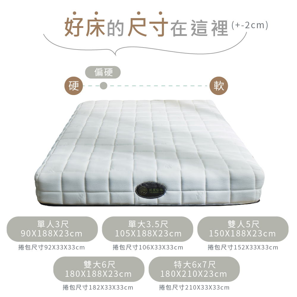 【藤原傢俬】防螨抗菌硬式豆腐獨立筒捲包床 (3A5)