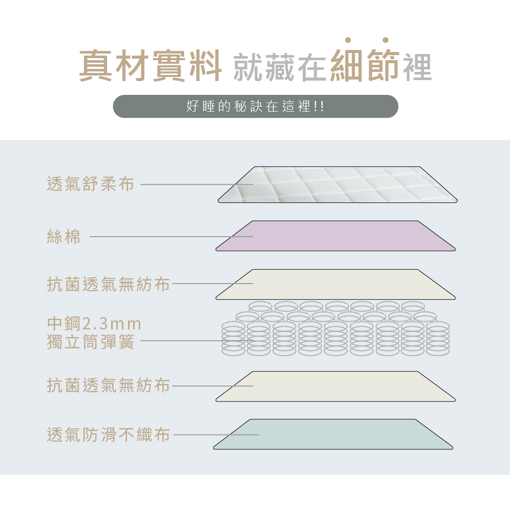 【藤原傢俬】4D水冷膠+天絲舒柔布硬式2.4mm獨立筒床墊