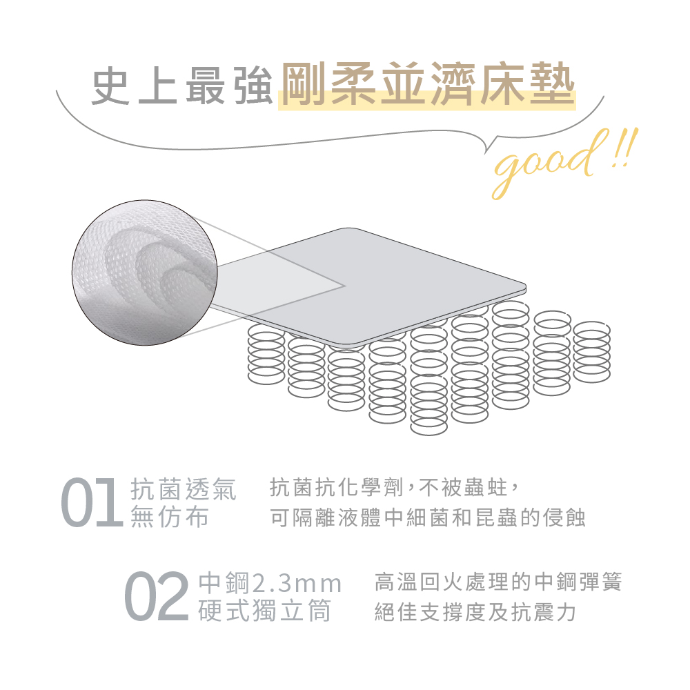 2.3mm硬式獨立筒床沿不塌陷