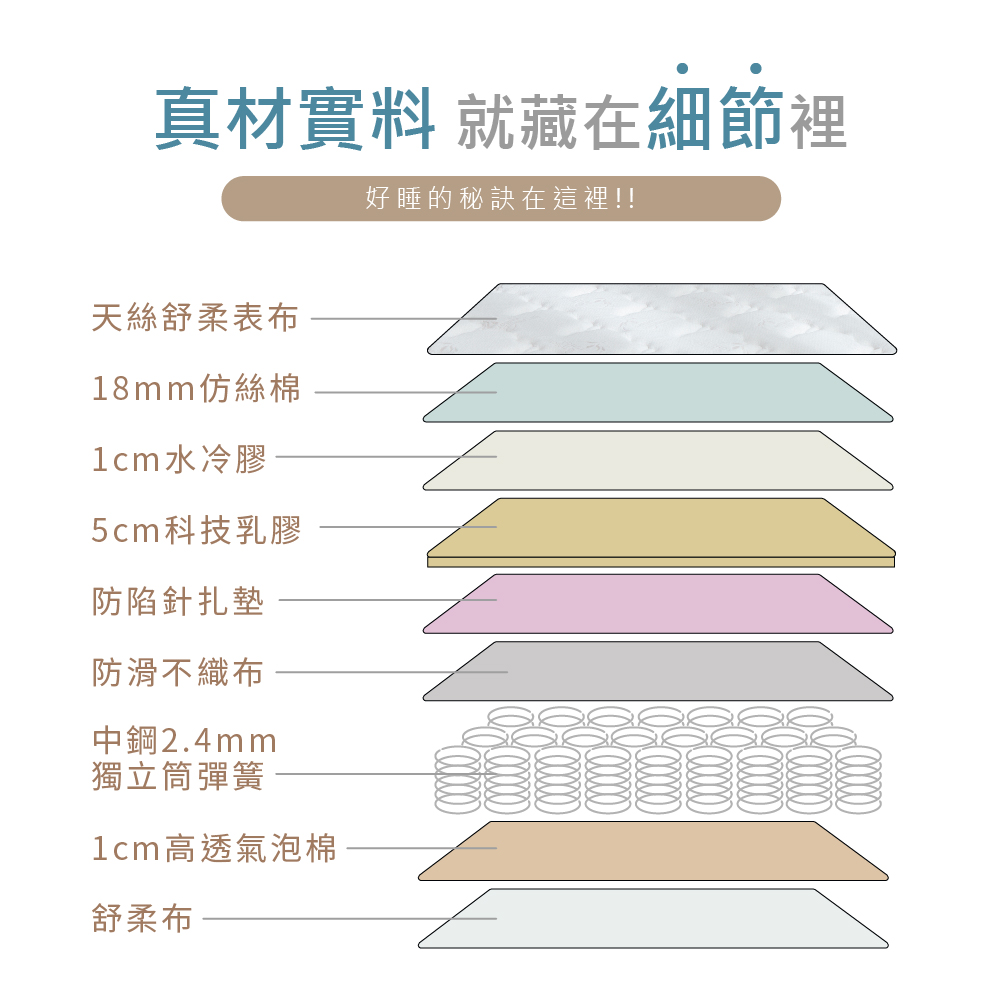 4D水冷膠+天絲舒柔布硬式2.4mm獨立筒床墊
