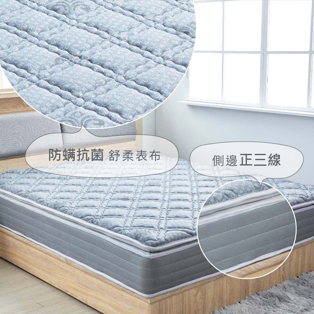 極致灰正三線防螨抗菌硬式獨立筒床墊